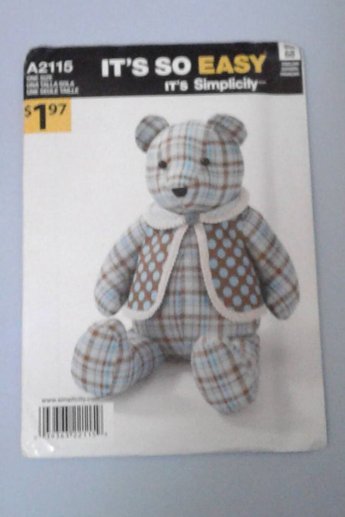 Simplicity Easy Memory Bear Pdf A2115 Rare Pattern Etsy Uk
